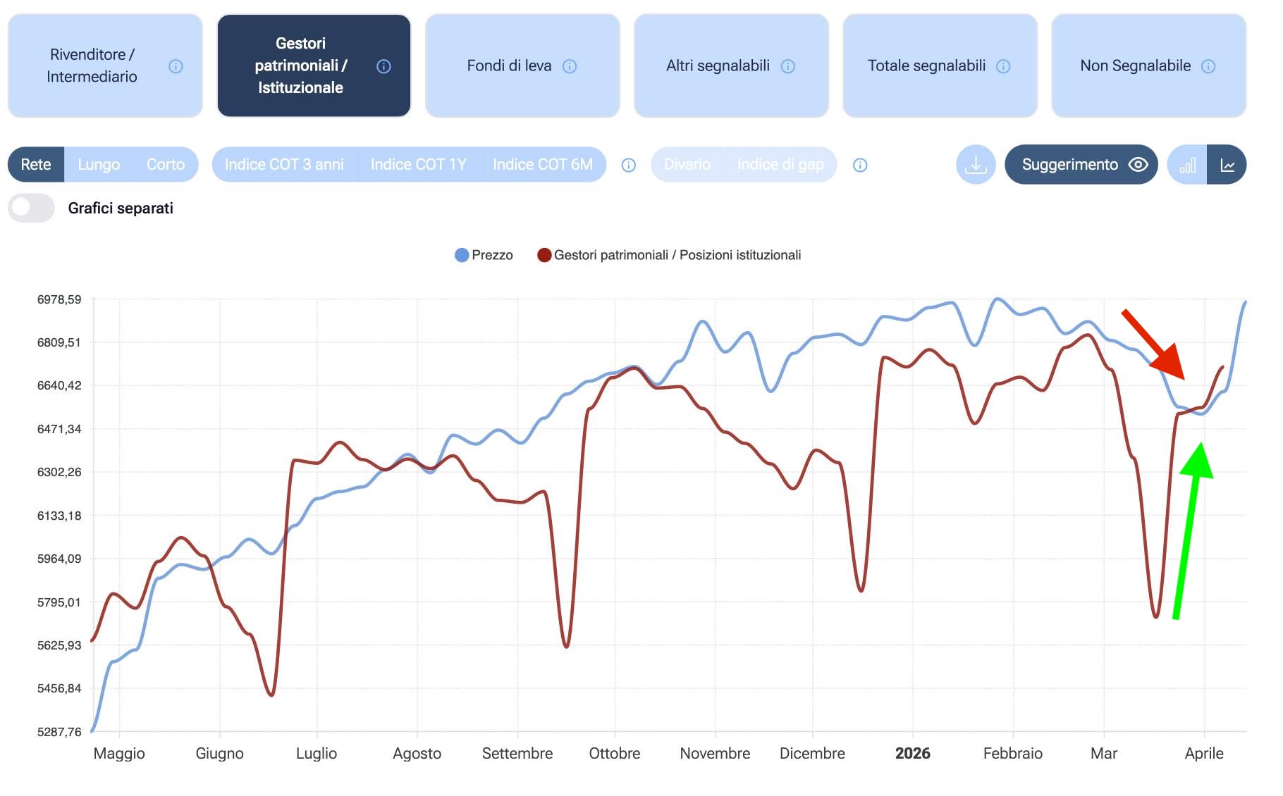 Per avere la conferma definitiva della bontà dell'analisi, è fondamentale capire dove stanno andando i "Big Money". Filtrando momentaneamente i fondi speculativi (non-commercial) per concentrarci sugli investitori di lungo termine, abbiamo analizzato il comportamento degli asset manager durante le due settimane di ribasso scatenate dai timori per la guerra in Medio Oriente.
