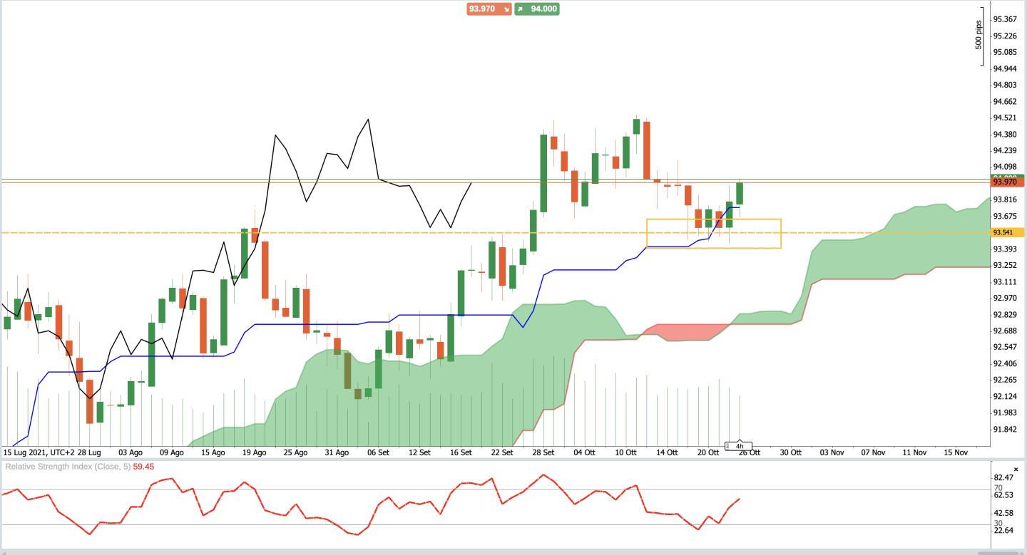 La linea kijun dell'indicatore Ichimoku ha funzionato molto bene da resistenza e ci aspettiamo non solo un ritorno sui minimi precedenti in area 1.1530, ma anche un obiettivo finale posto a 1.1440. Ogni rialzo nelle prossime ore - giorni potrebbe creare delle ottime opportunità ribassiste.